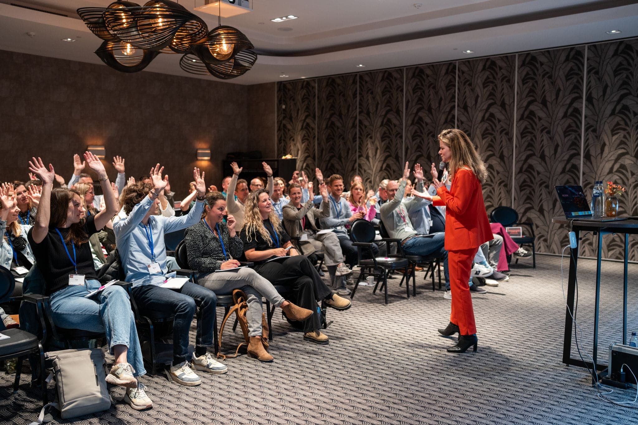 Marte Schuurmans (1999) is de dagvoorzitter die de zaal laat leven. Ze zet mensen aan het denken, aan het praten en soms even uit hun comfortzone. Altijd met aandacht voor wat er in de ruimte gebeurt.